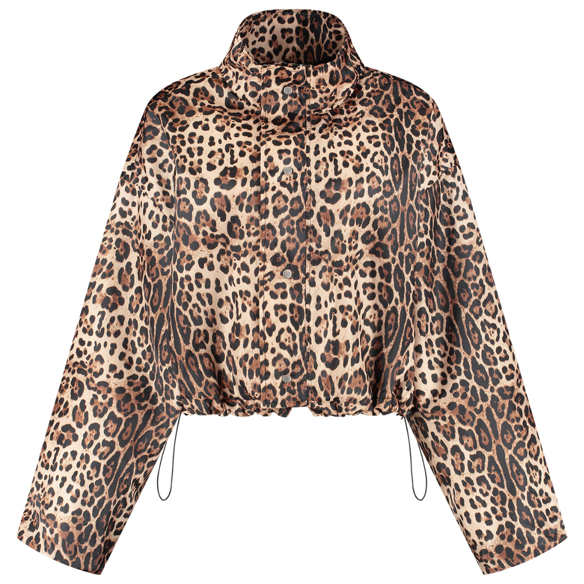 Deze must-have wil je hebben door de all over panter print. Er zitten elastieken aan de onderkant waarmee je de bomber kunt aantrekken naar jou fijnste fit. Deze bomber valt wat korter. De mouwen en de body zijn gevoerd, de kraag niet. Er zit een rits in en ook drukknopen van boven naar beneden.