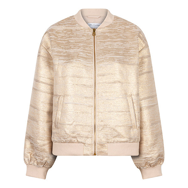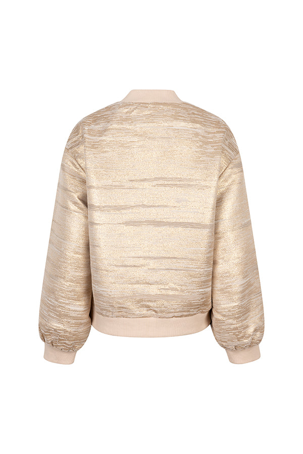 De Bomber is gemaakt van Jacquard stof en heeft steekzakken aan de zijkant. Het item gaat dicht met een rits, en heeft een elastiek bij de mouwuiteinden.