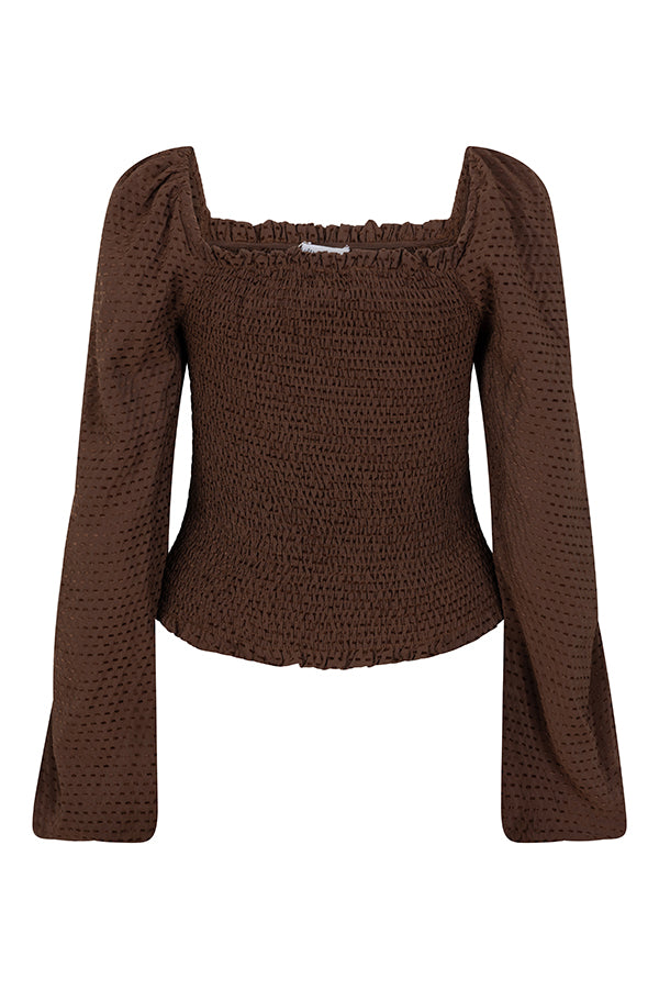 Lofty Manner - Blouse Samira - Smockdetails - Donker Bruin