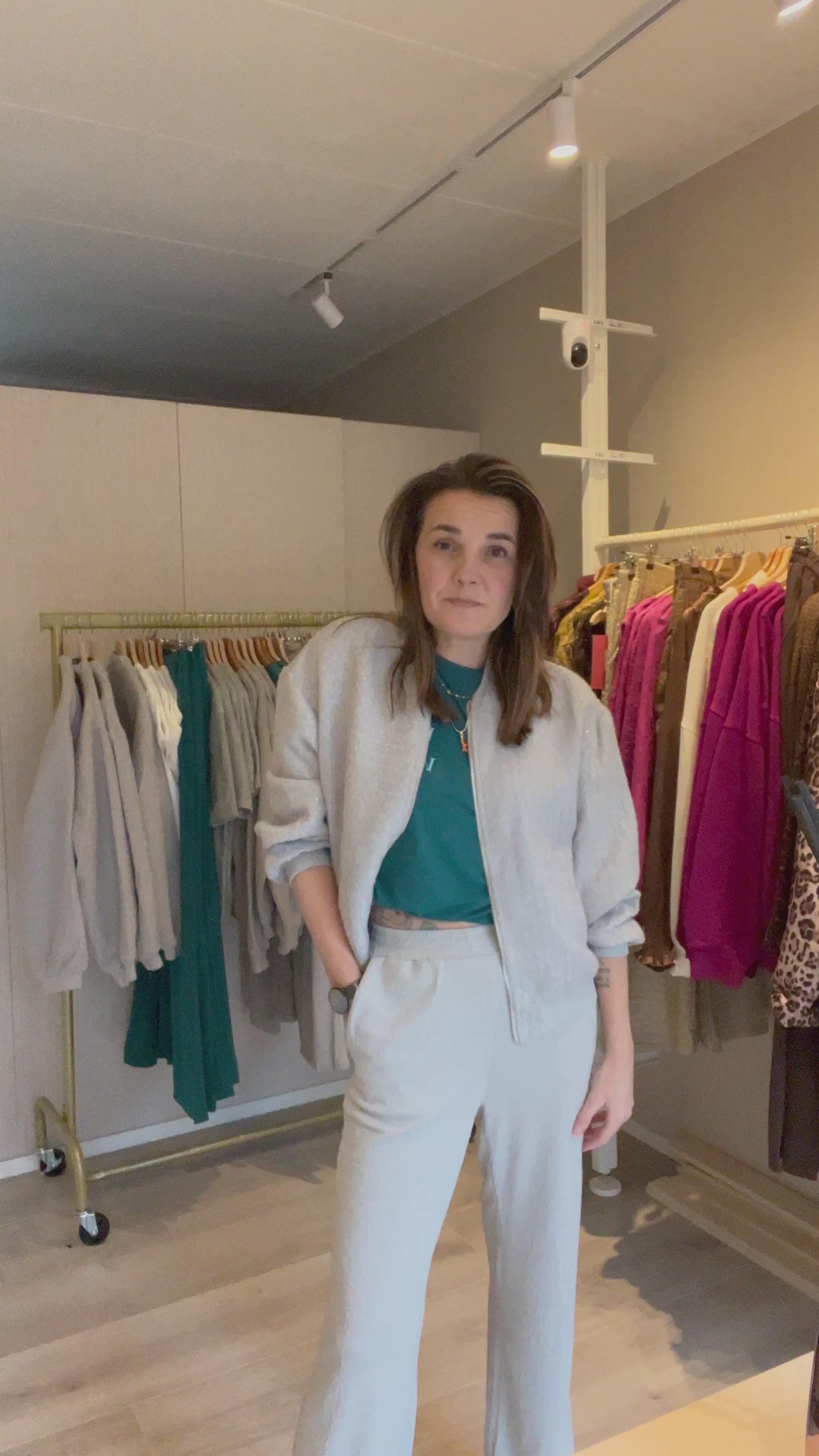 De stof heeft een glimmend detail in de stof. Het jasje valt iets oversized. Een stijlvol item dat je outfit direct een moderne look geeft.