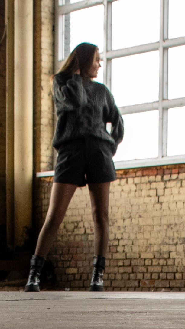 De trui heeft een opstaande kraag, en grote volumineuze mouwen. De fit is oversized en goed te combineren met verschillende stijlen.