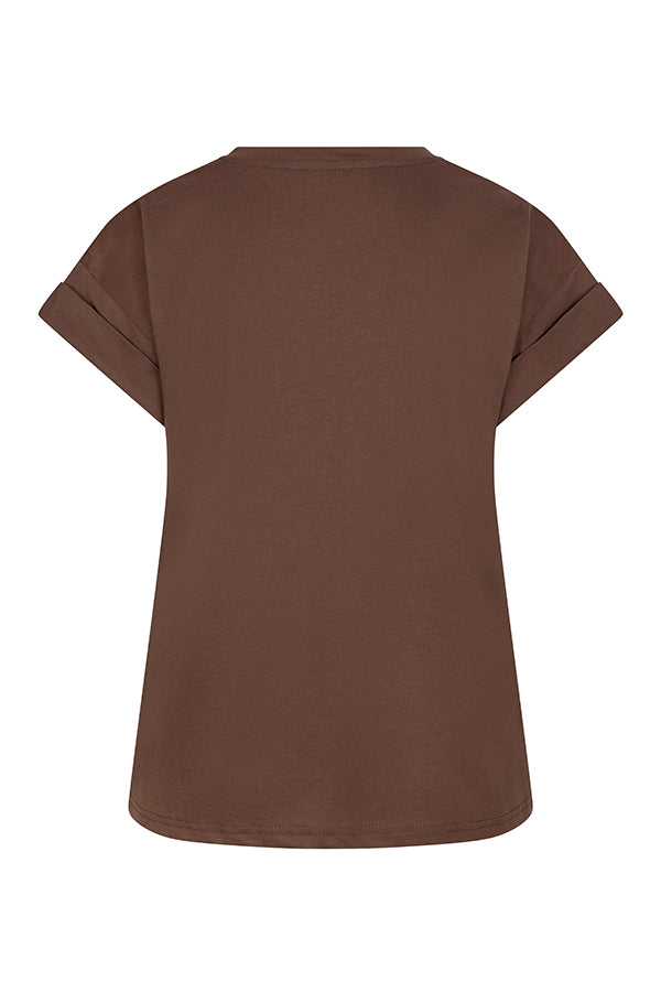 Lofty Manner - T-shirt Maysa - Ronde Hoge Hals- Bruin