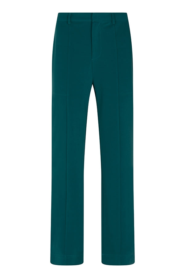 Trouser Fenne is een teal trend kleur broek met hoge taille en rechte pijpen.