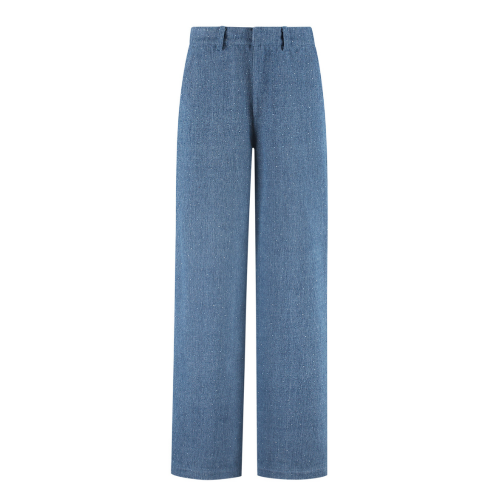 Studio Amaya Pants Mies is een ooi blauwe broek die je super goed kan combineren in verschillende stijlen.