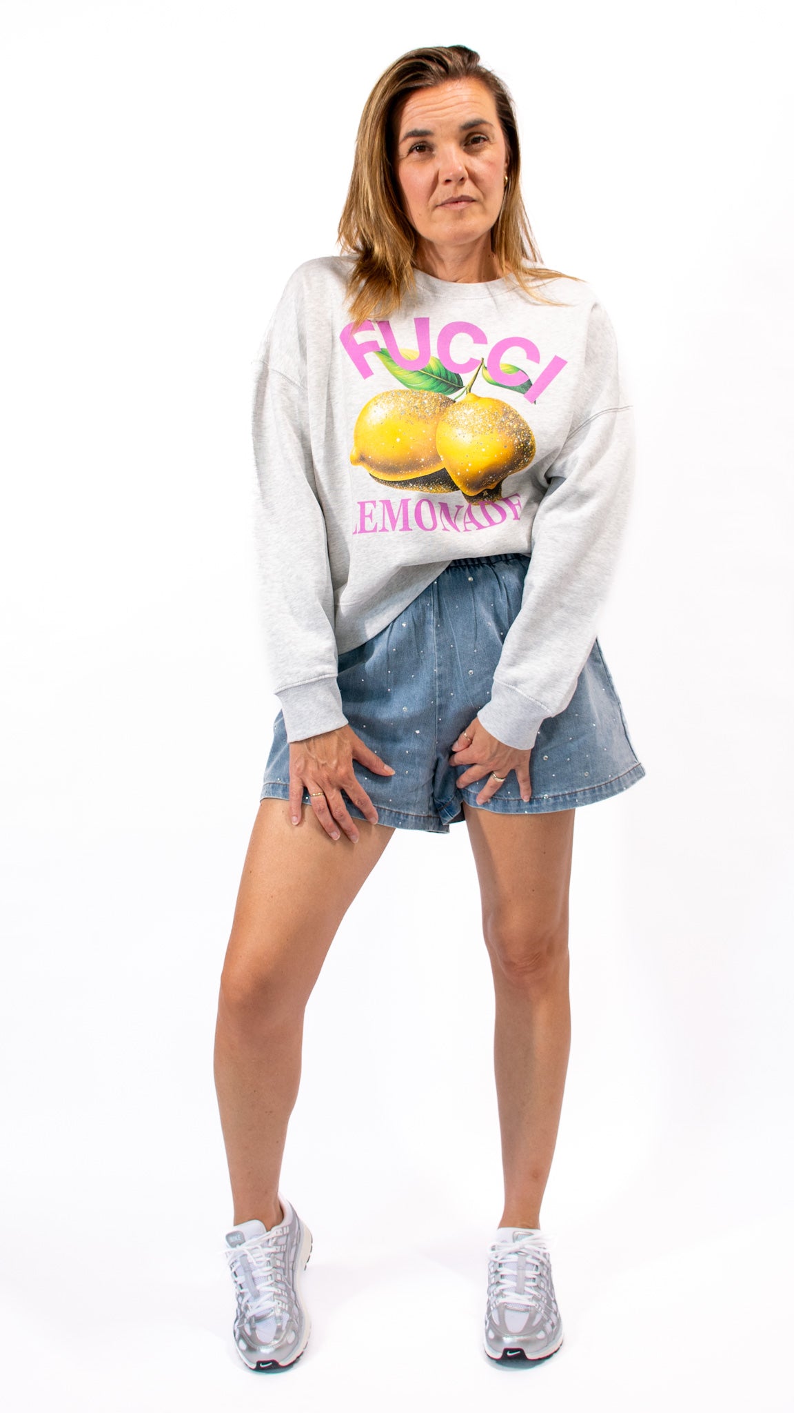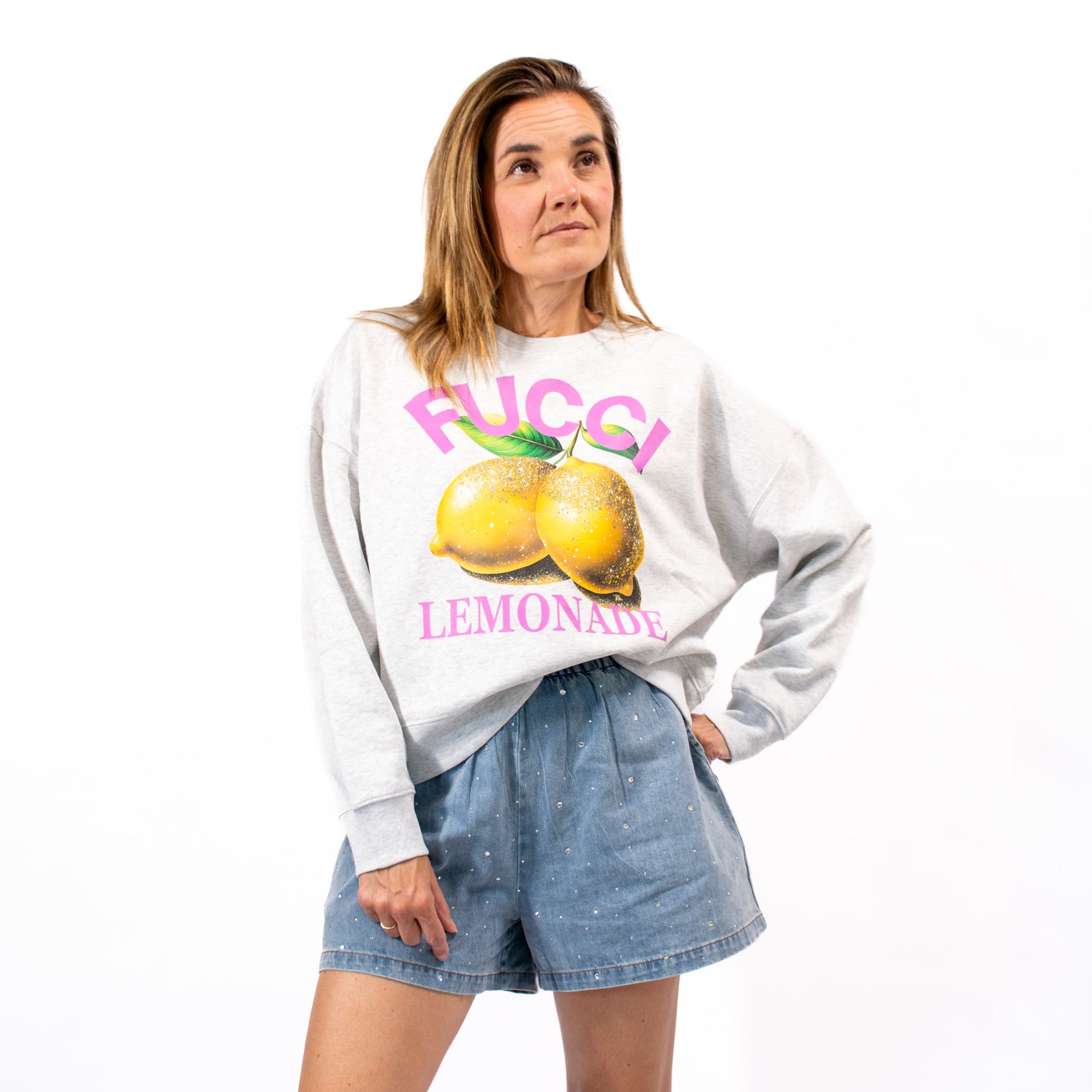 Met zijn unieke print en ronde hals is deze PiNNED by K Sweater Fucci Lemonade perfect voor zowel casual als trendy outfits. Draag hem met een jeans voor een ontspannen uitstraling of combineer hem met een rok voor een modieuze twist. Ongeacht de gelegenheid, deze sweater zal je zeker opvallen.