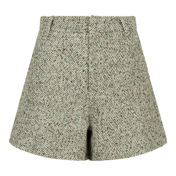 Gemaakt van tweed stof wat dikker aanvoelt, in het mooie zacht groen. Het broekje heeft een hook and eye-sluiting een blinde rits en riemlussen.